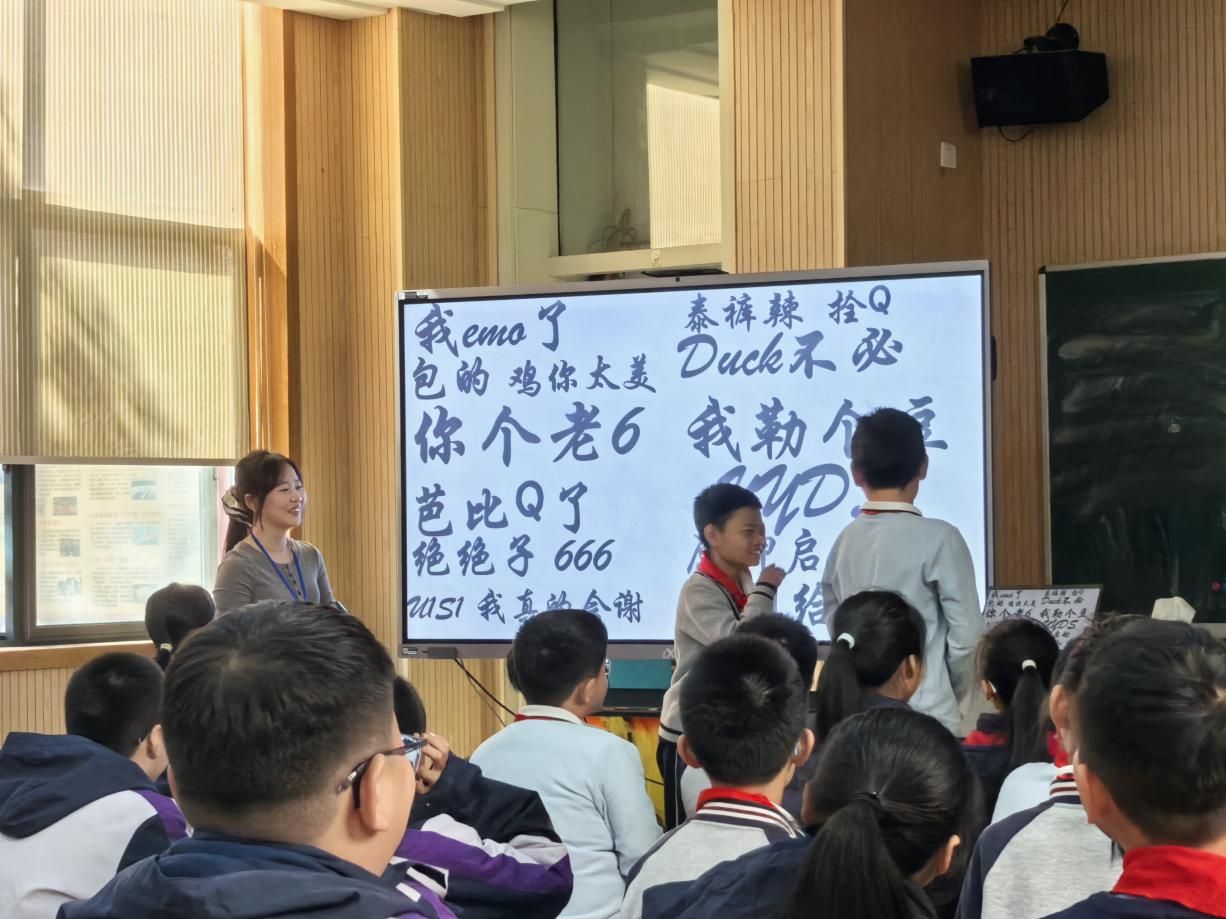 我校实习教师曾彩玲给五(1)开班会,以贴近学生生活的案例、生动有趣的互动形式,将语言规范教育与文化自信培养巧妙融合,不仅让学生深刻认识到网络烂梗的危害与中国话的魅力,更让我对主题班会的教育功能有了全新的思考。班会拒灌输,抓痛点搭梯子,先抓烂梗痛点,再依学生认知搭梯子:生活视频、情景剧、演后复盘,层层对比,让苍白表达与温暖语言现场碰撞;文化浸润里,学生自悟好好说话是尊重更是自信,实现由他律到自律的轻盈转身。