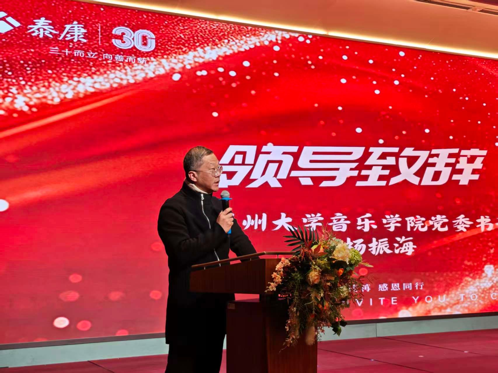 温州大学音乐学院党委书记杨振海介绍了学院的专业设置、人才培养特色以及毕业生就业情况。他表示,此次与泰康之家·瓯园共建艺术实践基地,是学院深化产教融合、服务地方社会的重要实践,也是持续推进“访企拓岗”、促进学生高质量就业的关键举措之一。通过与瓯园这样的优质平台合作,不仅能有效拓宽学生实习就业渠道,增强其实践与社会服务能力,更能搭建一个“双向赋能、合作共赢”的育人平台。杨振海特别指出,看到往届毕业生在瓯园稳步成长、贡献力量,倍感欣慰,这是校企协同育人成果的生动体现。学院将继续依托专业力量,支持瓯园开展艺术文化活动,助力实现长者“老有所养、老有所乐、老有所学、老有所为”。
