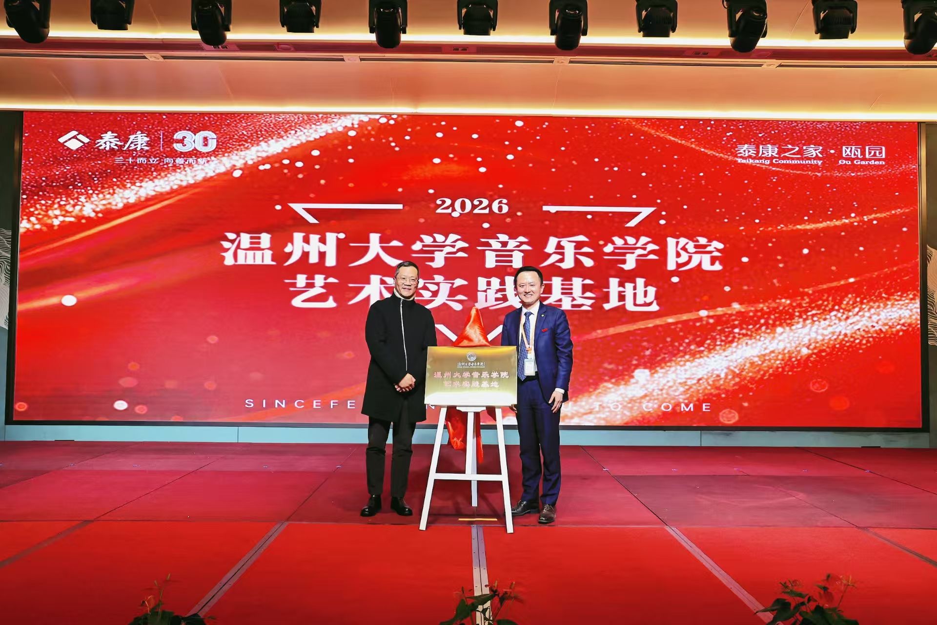 2026年1月21日下午,泰康之家·瓯园内暖意融融、琴韵悠扬,温州大学音乐学院与泰康之家·瓯园共建“艺术实践基地”授牌仪式在此隆重举行。温州大学音乐学院党委书记杨振海,副书记林海红,泰康之家·瓯园社区负责人俞旗出席活动。