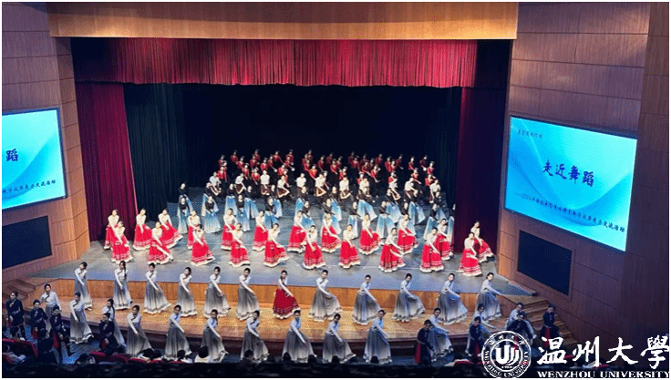 近日,温州大学大学生艺术展演首场美育欣赏大课在育英大礼堂精彩开课。首场美育欣赏大课是音乐学院组织开展的“‘走近舞蹈’2024年舞蹈教育专业课堂教学成果展示交流活动”,也是对学校2025年“天瑞奖”乙组类作品的一次集中筹备。