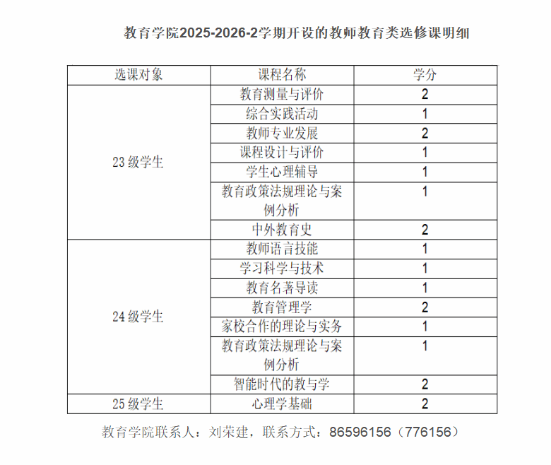 一、选课课程及选课对象:见附件《2025-2026-2教师教育类任选课--教学计划》;