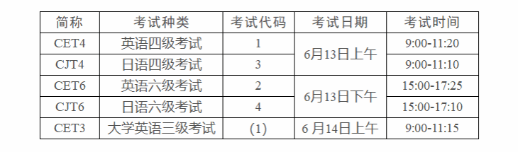 2026年上半年全国大学英语四、六级考试笔试(以下简称CET)考试时间为6月13日,我校开考科目为英语、日语的四级和六级。