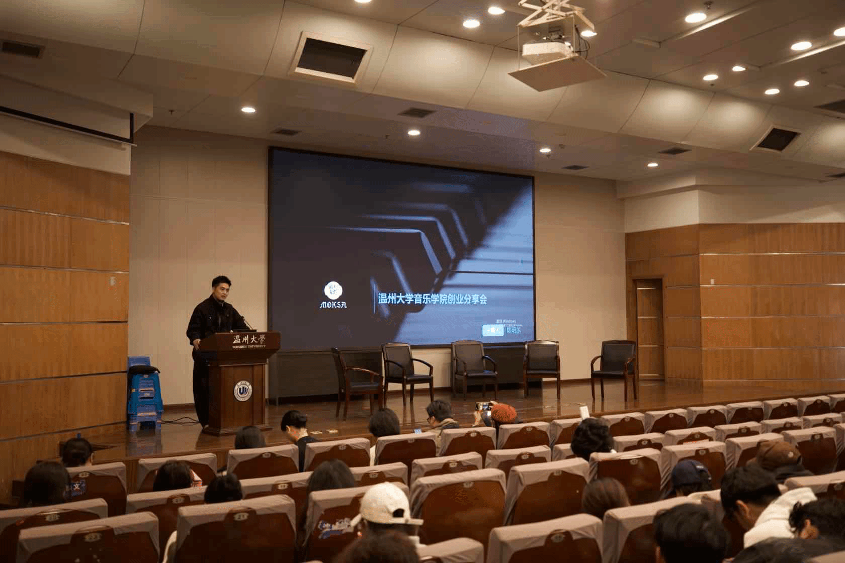 随后,2015届校友陈明东聚焦音乐行业就业创业方向,分享了自己从校内录音棚起步,承接商业编曲业务,逐步创办机构并最终成立传媒公司的成长历程。他强调音乐行业发展需以技术热爱和自我驱动为支撑,鼓励学子充分利用校内资源,关注互联网平台变现渠道,实现职业突破。