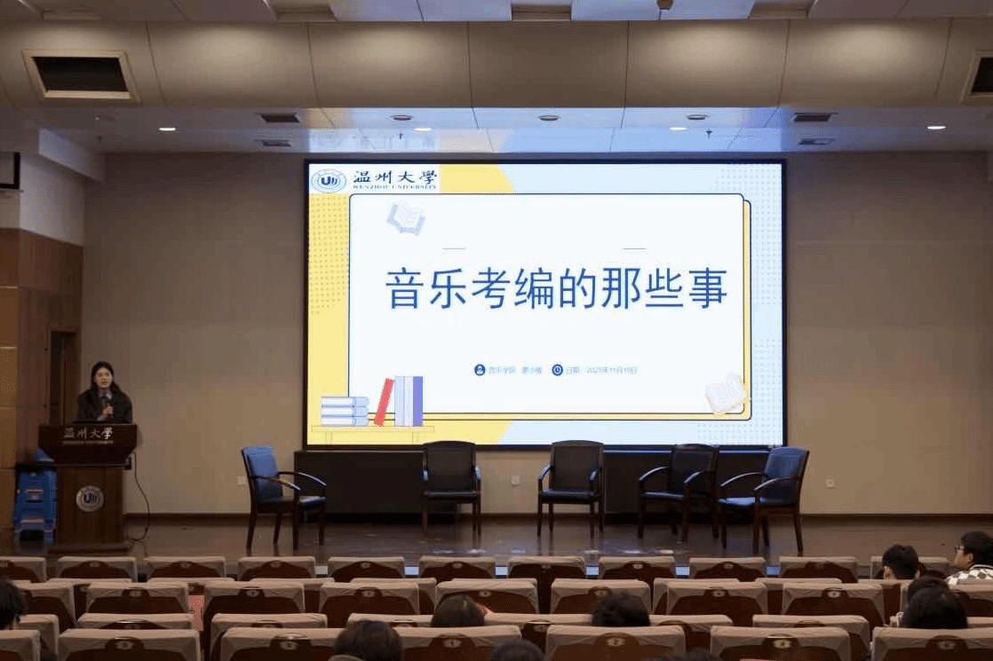 11月19日上午,主题为《音乐舞蹈毕业生将何去何从——考研、考编、创业》讲座在北校区信息楼报告厅举行。音乐学院党委副书记林海红出席活动,讲座由温州大学音乐学院学工办主任胡震鹏老师主持,由李葳老师主讲,邀请多位优秀校友围聚焦考研、考编与创业三大核心主题,为全体23级音乐、舞蹈专业学子开展一场职业生涯规划指导。