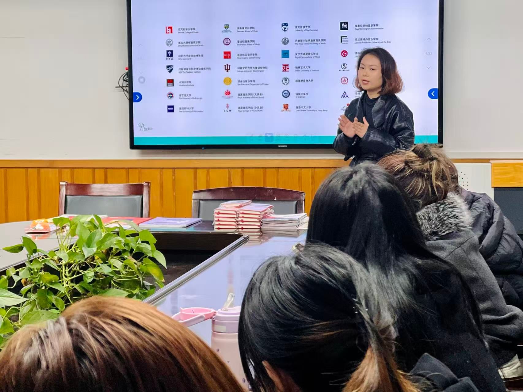 3月19日晚,温州大学音乐学院联合温州新通留学成功在院内举办音乐专业学生留学全攻略专题讲座。特邀洛素国际艺术教育集团杭州校区音乐部负责人周晏菲担任主讲人,音乐学院二十余位有留学意向的学生现场听讲并交流。
