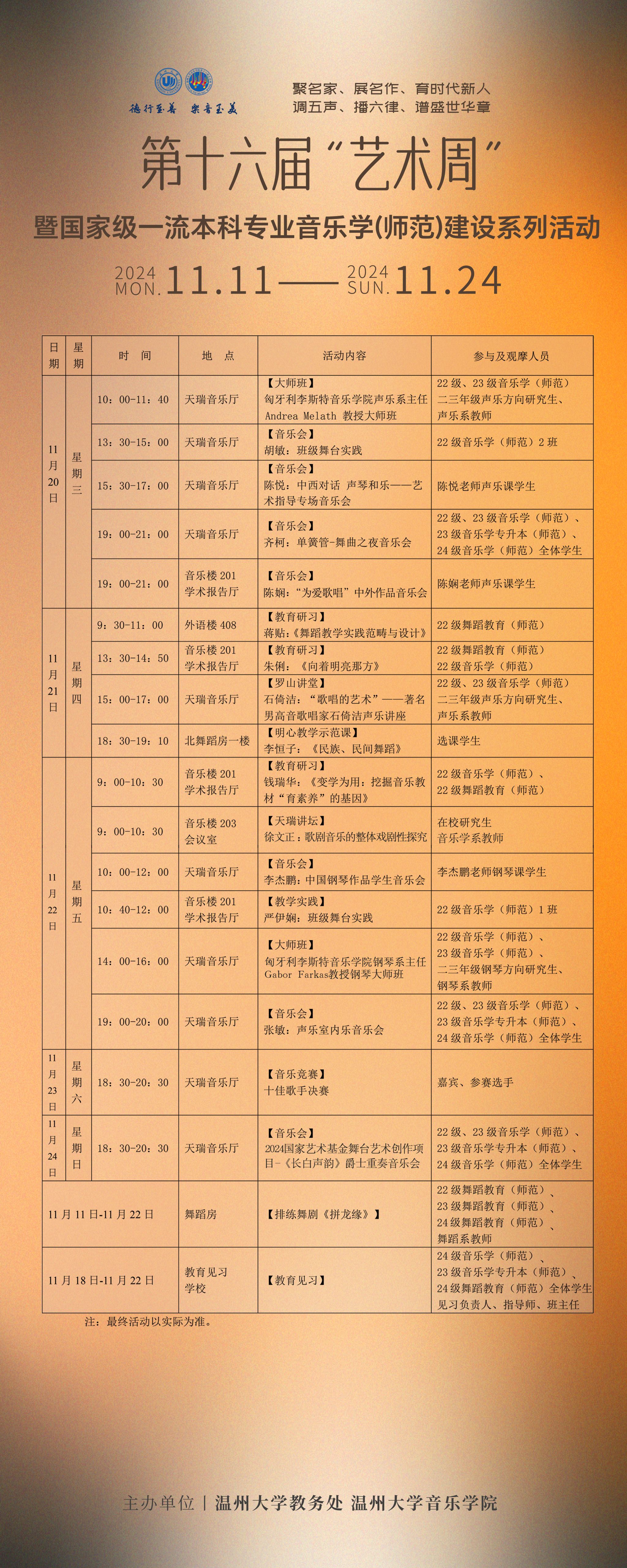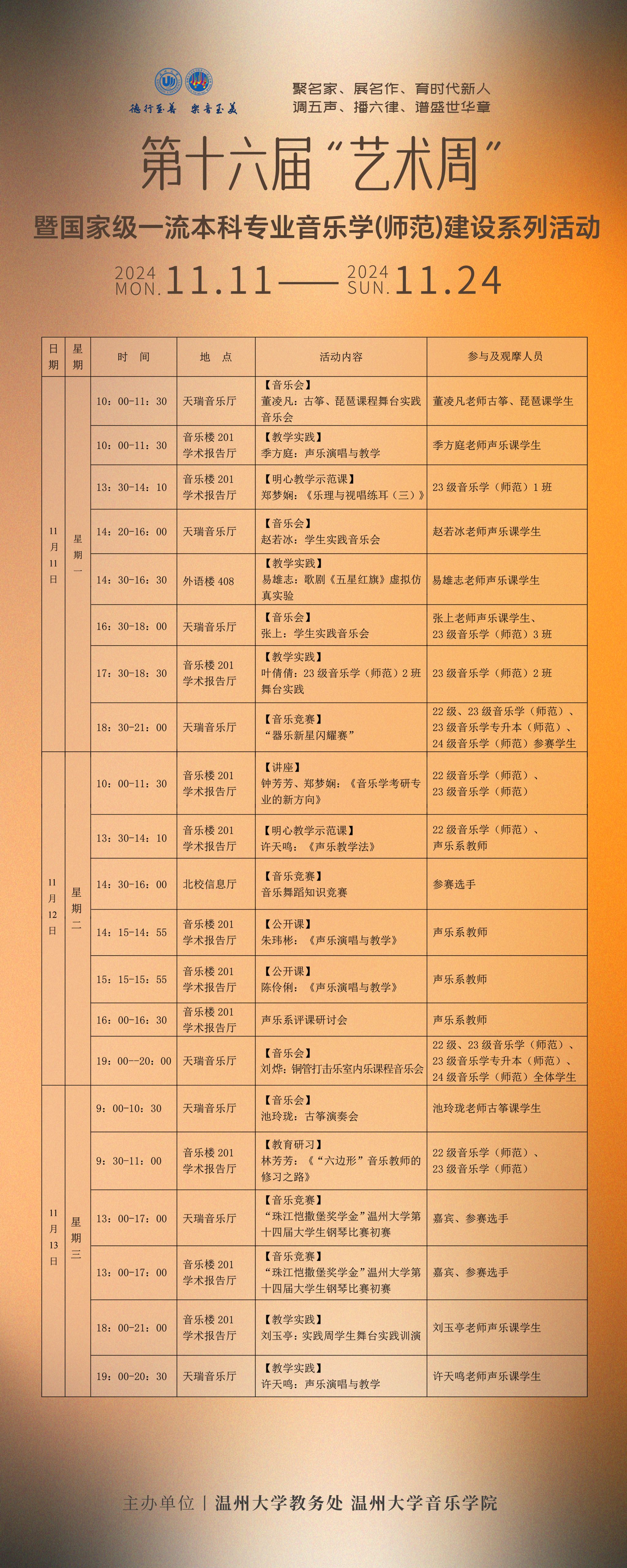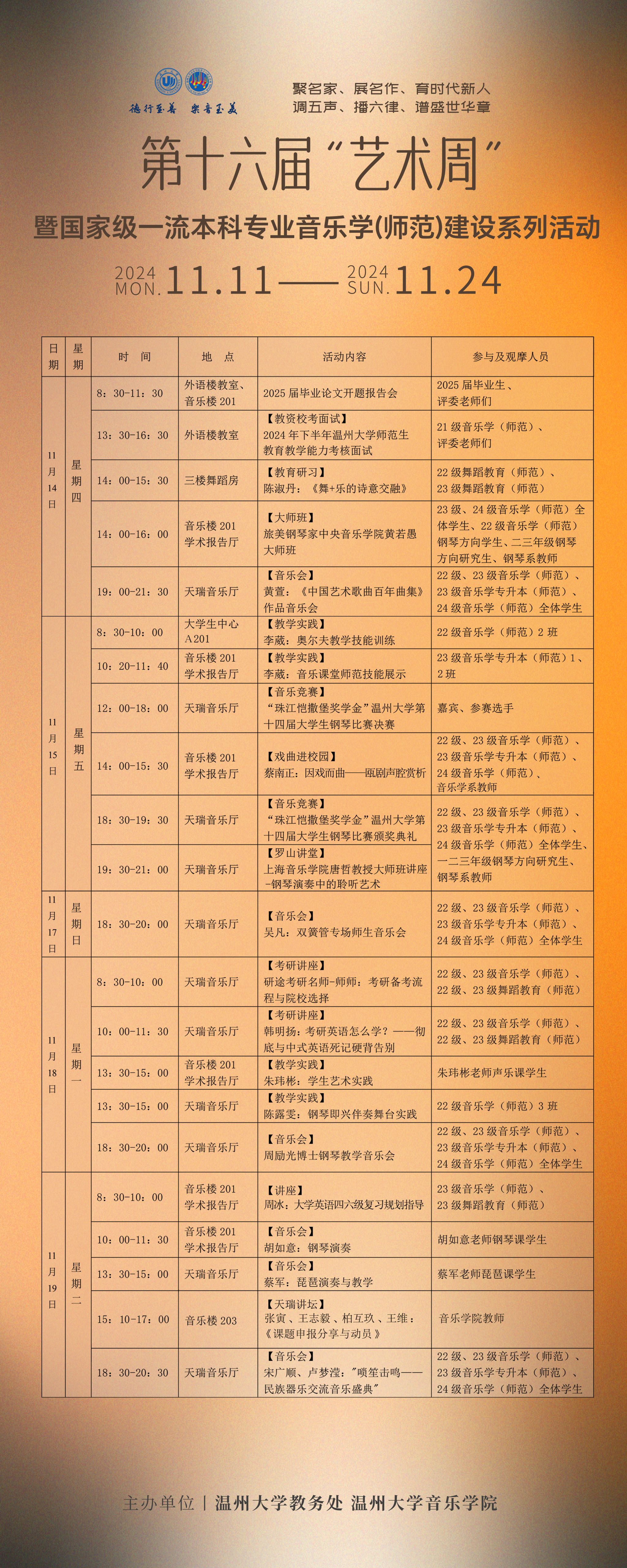 国家级一流本科专业音乐学(师范)建设系列活动||温州大学音乐学院第十六届“艺术周”